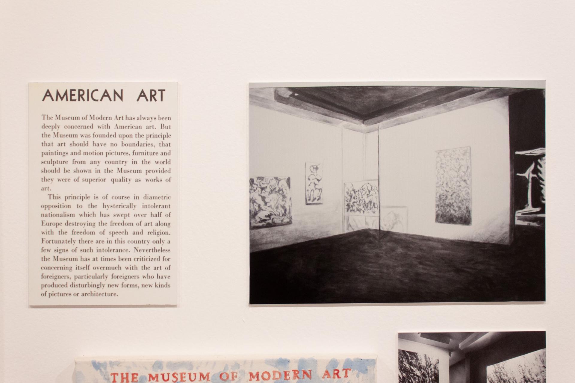 Muzeu i Artit Amerikan në Prishtinë gjithashtu përfshinë "Muzeun e Artit Modern", si një shpikje Amerikane e përcaktuar nga dy ekspozitat historike të Alfred Barr në vitin 1936: "Kubizmi dhe Arti Abstrakt" dhe "Dada, Surrealizmi dhe Arti Fantastik" ku vija kohore e këtij rrëfimi përmbyllet në mesin e 30-ave, kur edhe ishte krijuar.